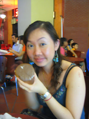Luscious! Yummy! Fresh! Passion! Irresistible ! I've heard of this donuts for so long, but still have no chance to try it out! Last sunday was hanging out with Grace, i told her i craved for this donuts which tastes so good, i want to hunt for it! Firstly, i told her Big Tree! *ops* Pardon me, It's Big Apple! hahaha... my bad! Finally, we found this outlet at the Curve, when i saw the delicious donuts displayed at the corner, so tempting! *saliva dripping* I kid you not, lots of people will die for this donuts! In my mind, i just want to try it out, might just grab one piece @ RM2. Then we saw 6 pieces for RM9.50 which is cheaper! never waste much time, we Q-up to grab our donuts! While we were picking our donuts, we can observed how the staff making the donuts! mind you, it's freshly baked!!!! We had green tea, bananarama, chocolate, durian, caramel & peanut butter (i guess so) ^_^ After my first bite, i just can't stop myself keep munching more donuts! Just imagine, once you give a bite, you will have the kind of happy feeling (from your sense), so soft...another bite...the soft cream filling is squeezing out from donuts..kill me better! *finger licking good* Oh My God! Here you go my diet! I love big O!!! Big Apple Donuts!! hm..bit regret now never grab a cuppa illy coffee from there!